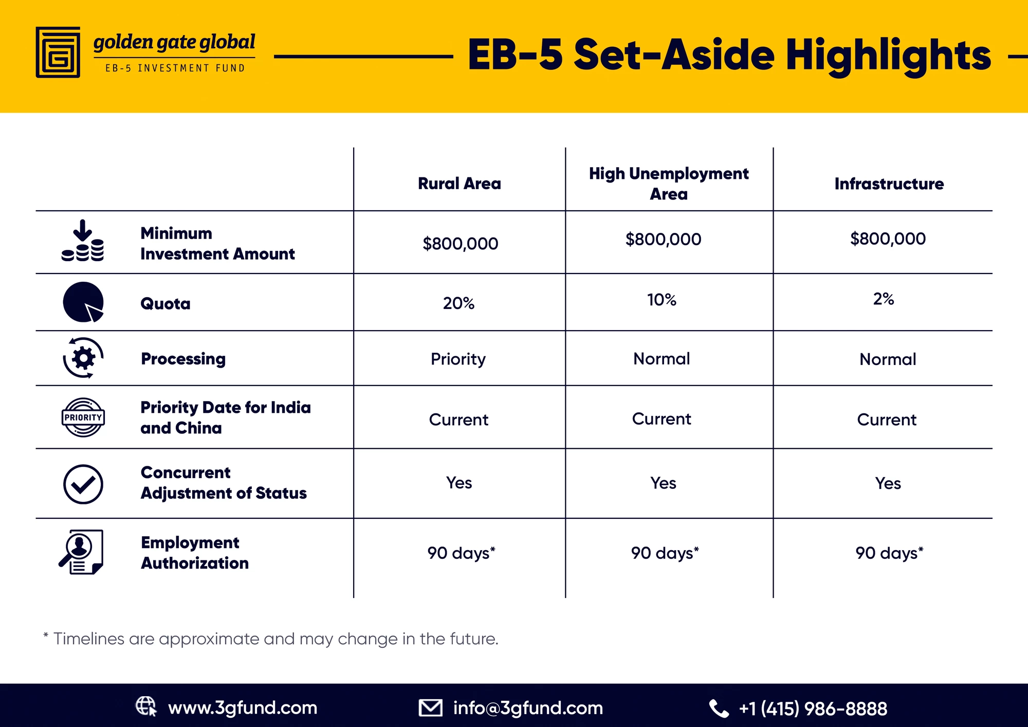 Golden Gates Global (GGG) specializes in offering EB-5 projects situated in rural and high unemployment areas, providing potential investors with opportunities that not only meet the EB-5 program's investment requirements but also align with GGG's commitment to facilitate meaningful economic impact.